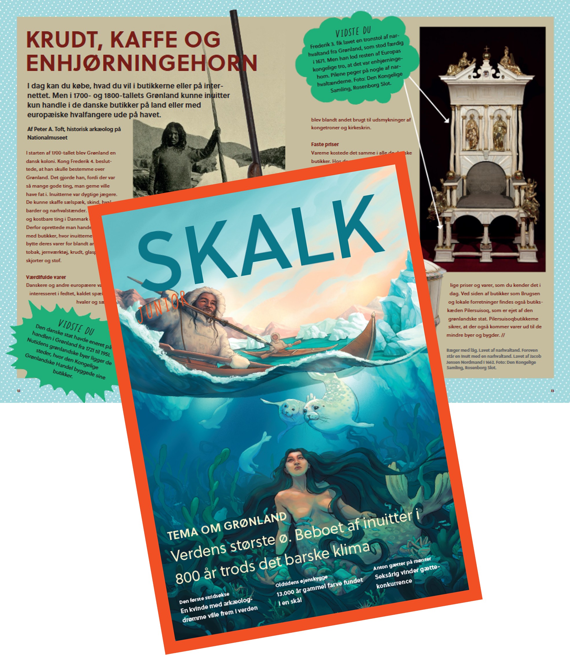 Skalk Junior er spændende artikler om dansk historie fra jægerstenalderen til nutiden , som inspirerer børnene til at dykke ned i historien og gå videre på opdagelse efter den i deres omgivelser.