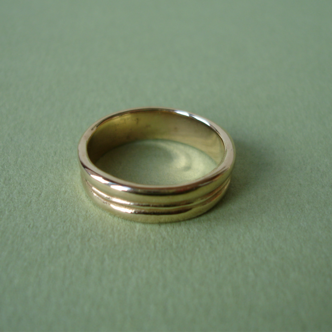 Ringen har form af en omløbende dobbeltvulst. Sådanne enkle fingerringe var ret almindelige i romertiden; de kan ligne vore dages gifteringe, men om de også havde disses betydning, må forblive et ubesvaret spørgsmål. Under alle omstændigheder er det en smuk og ufordærvet form, som Skalk - med findermuseets (Randers Museum) venlige tilladelse - har ladet eftergøre til bedste for interesserede blandt læserne. Læs artiklen "Tidlig kammergrav" (Skalk 1993:5)