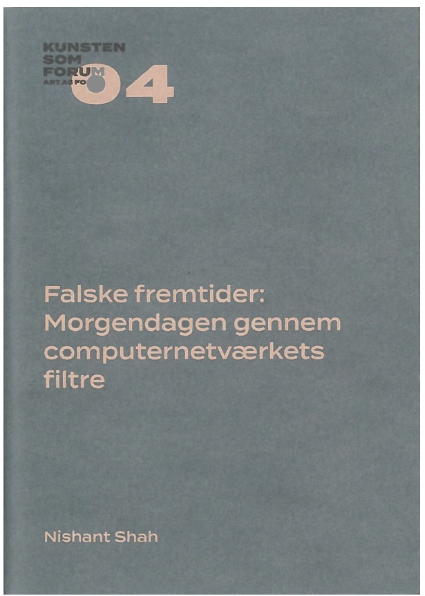 Nishant Shah vender i Falske fremtider: Morgendagen gennem computernetværkets filtre dels blikket mod mulighederne eller manglen på samme for at opbygge frie og kritiske fællesskaber på nye digitale platforme. Og dels mod en dyberegående analyse af de store forandringer, begreberne om sandt og falsk undergår i en digitaliseret virkelighed. Hos Shah er fremtiden blevet en algoritmisk sandsynlighedskalkule, som fremstår så godt som fastlåst. I dette lys spørger Shah til hvilke kulturelle fællesskaber, vi har mulighed for at danne i en digital virkelighed: hvad kan vi mødes om? Og hvordan kan vi forholde os aktivt til de falske fremtider, som stilles os i udsigt?