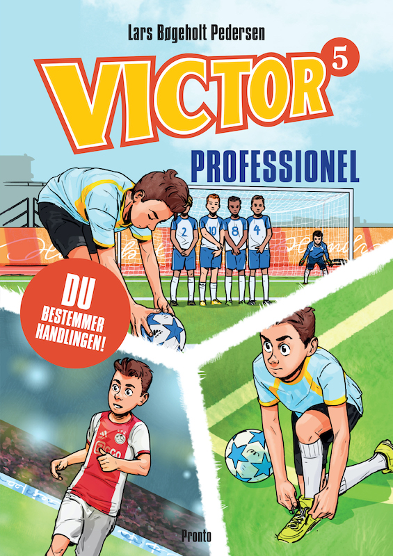 PROFESSIONEL er femte og sidste bog i serien om Victor. En interaktiv fortælling, hvor DU BESTEMMER HANDLINGEN og har indflydelse på, om han får opfyldt sin drøm om at blive professionel fodboldspiller.