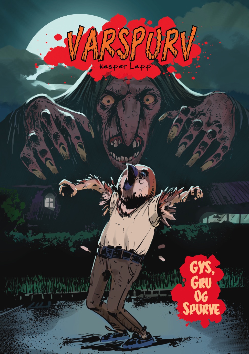 Mikkel kender godt til varulve, men han har aldrig hørt om varspurve ... før han selv bliver bidt af en! Nu er han dømt til at blive forvandlet til en blodtørstig spurv, hver gang det er fuldmåne, mens han desperat leder e er en kur. Hvem kanhan stole på? Og hvordan får han forklaret det hele til sin bedste ven?