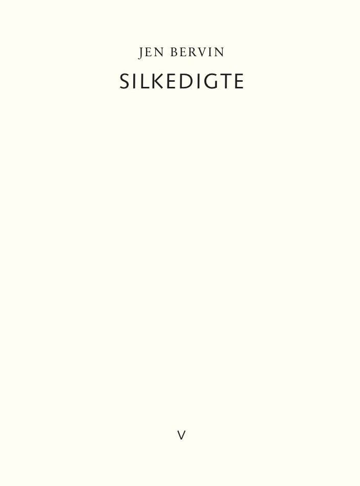 »En orms vrikken er ligeså vigtig som likvideringen af en præsident.« Jen Bervin (f. 1972), amerikansk forfatter og billedkunstner. Silkedigte er alternativ historie, poesi, science fiction og civilisationshistorie i ét. Bogen er skrevet fra en silkeorms perspektiv, der ser tilbage på sit liv et sted engang i fremtiden, fortæller og væver, mens skriften, trådene og stoffet langsomt bliver til. På dansk er tidligere udkommet Sølvbogen (2016). Silkedigte udgives i samarbejde mellem Forlaget Virkelig og Laboratoriet for Æstetik og Økologi.