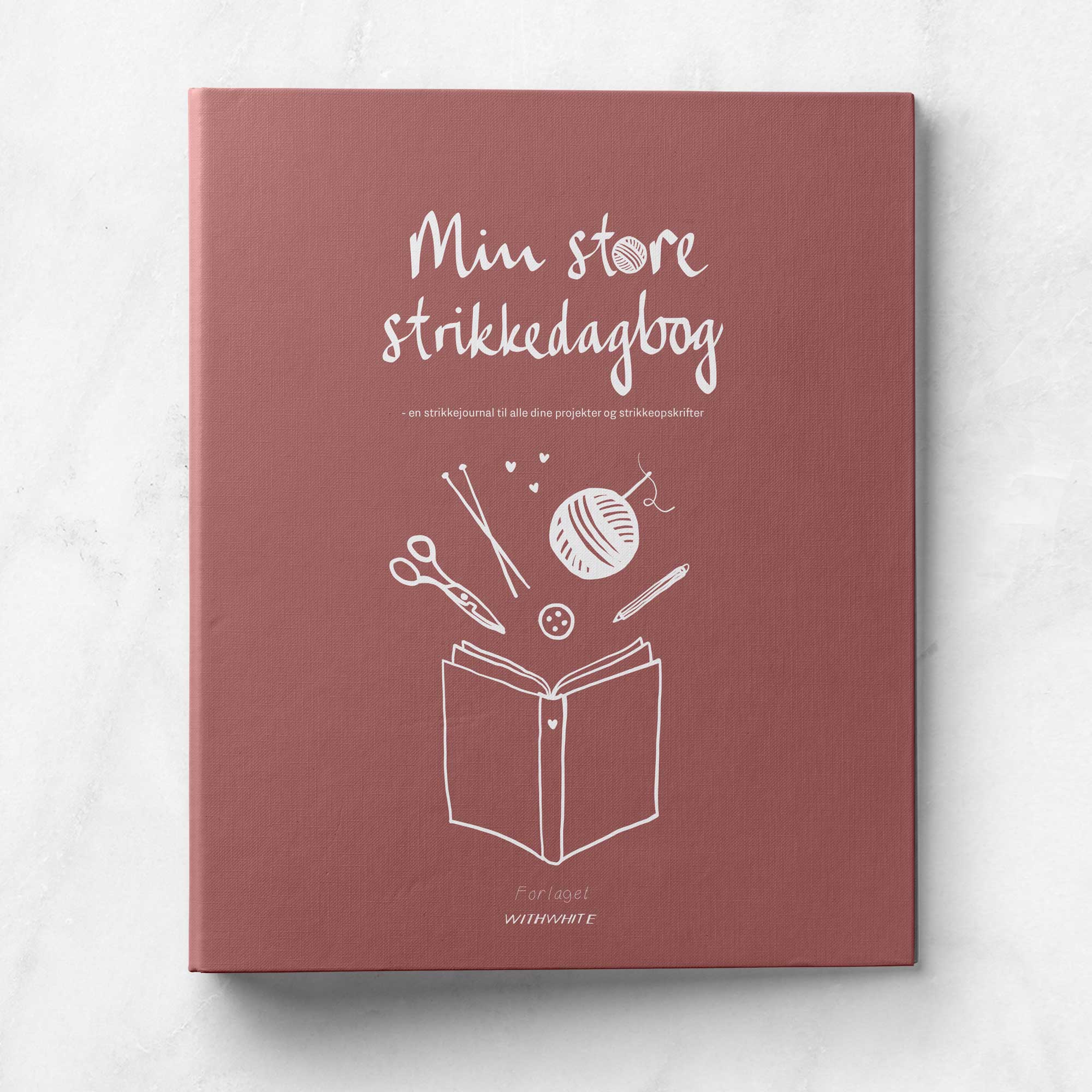 Vi håber, at du bliver glad for strikkedagbogen, og har du lyst, må du hellere end gerne dele dine noter med #minstorestrikkedagbog på Instagram eller på Facebook så vi sammen kan inspirere hinanden. Rigtig god fornøjelse med bogen og dine fremtidige strikkeprojekter. Du kan se flere billeder af bogen på Instagram @withwhite eller på www.withwhite.dk.